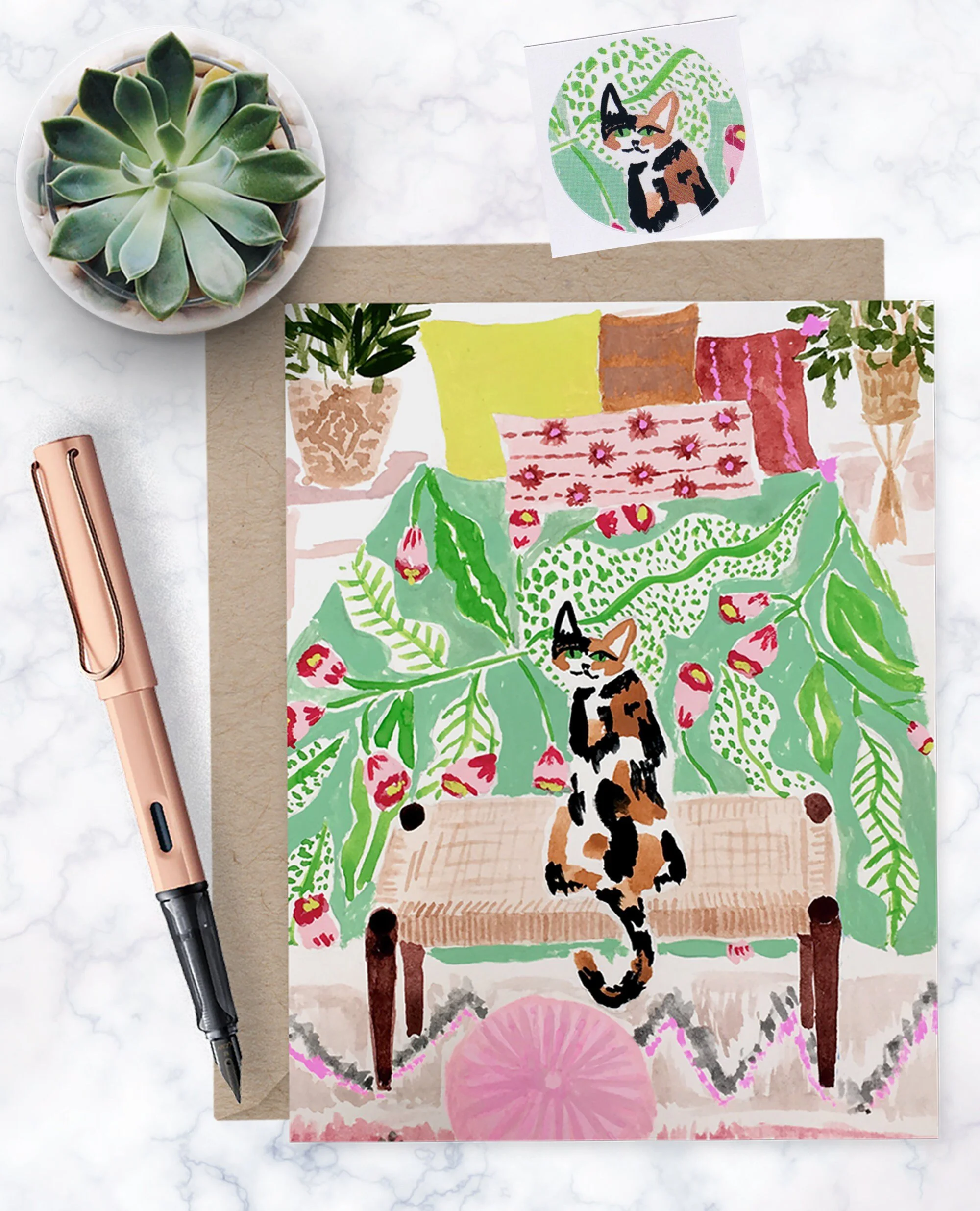 Cats in greenhouse illustration / pop-up greeting card design for Up With Paper